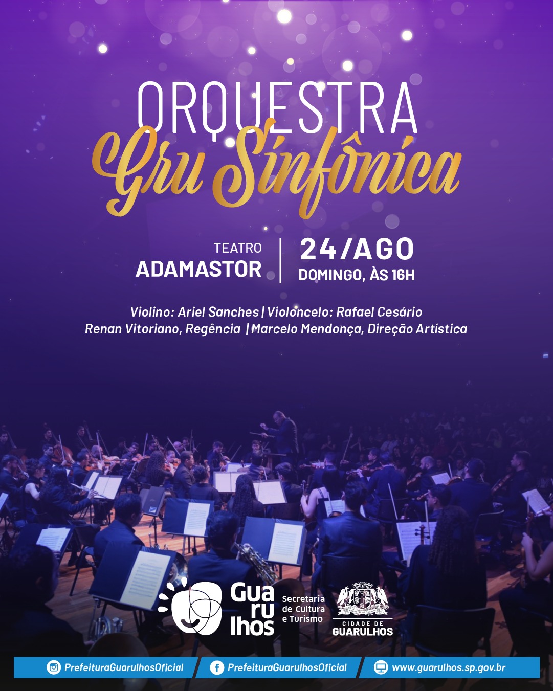 Teatro Adamastor Av. Monteiro Lobato, 734 - Macedo, GuarulhosA Orquestra GRU Sinfônica destaca peças do alemão Johannes Brahms em espetáculo no próximo domingo (24), a partir das 16h,