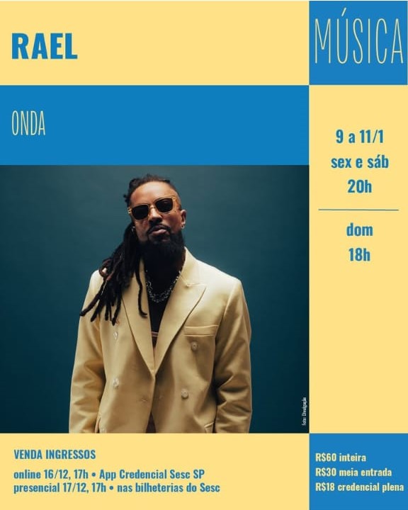 Entre os dias 9 e 11 de janeiro, sexta e sábado, às 20h, e domingo, às 18h, o cantor, compositor