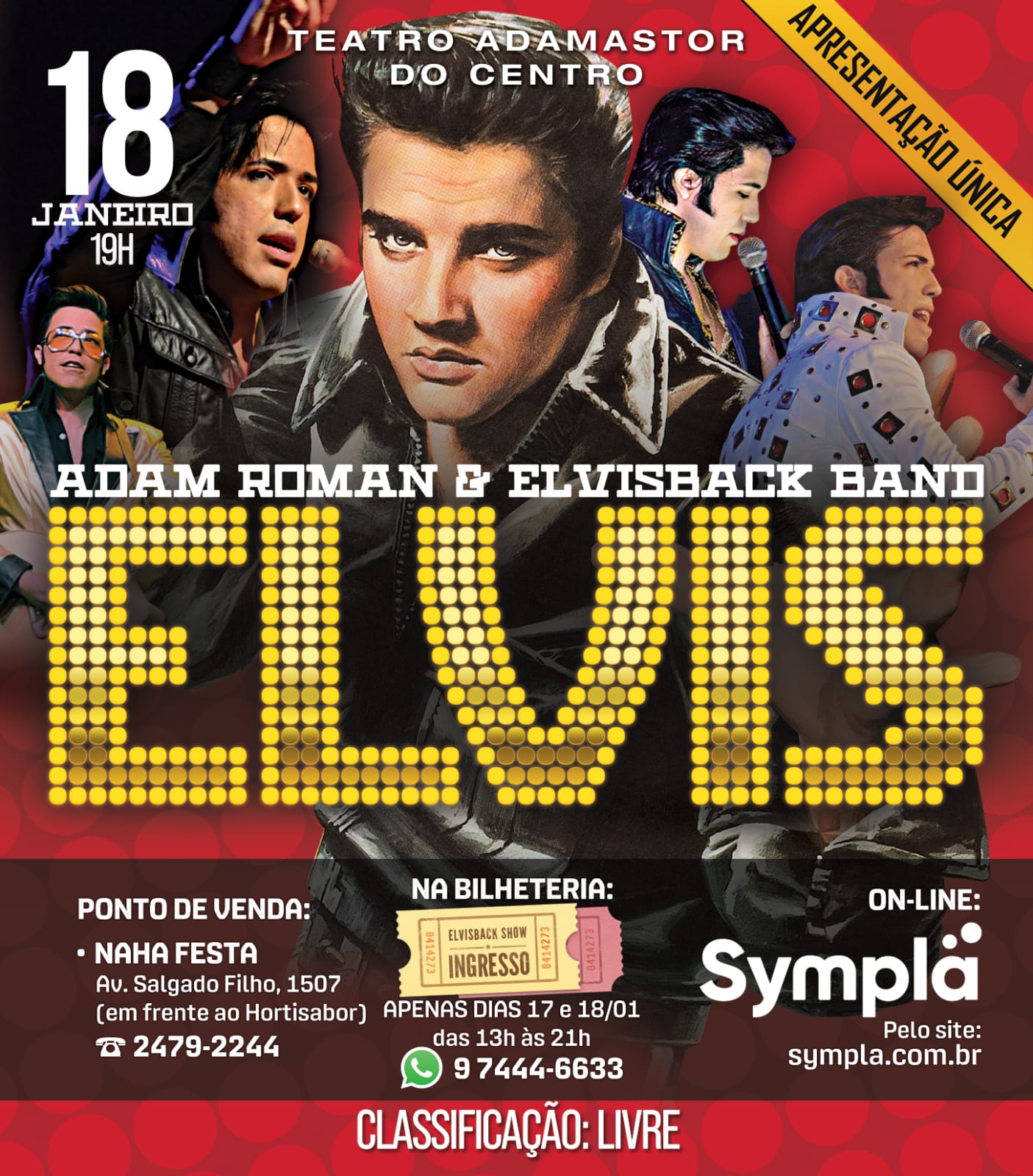 Adam Roman e Elvisback Band apresentam o espetáculo "Elvis", show emocionante e imperdível em única apresentação no dia 18 de