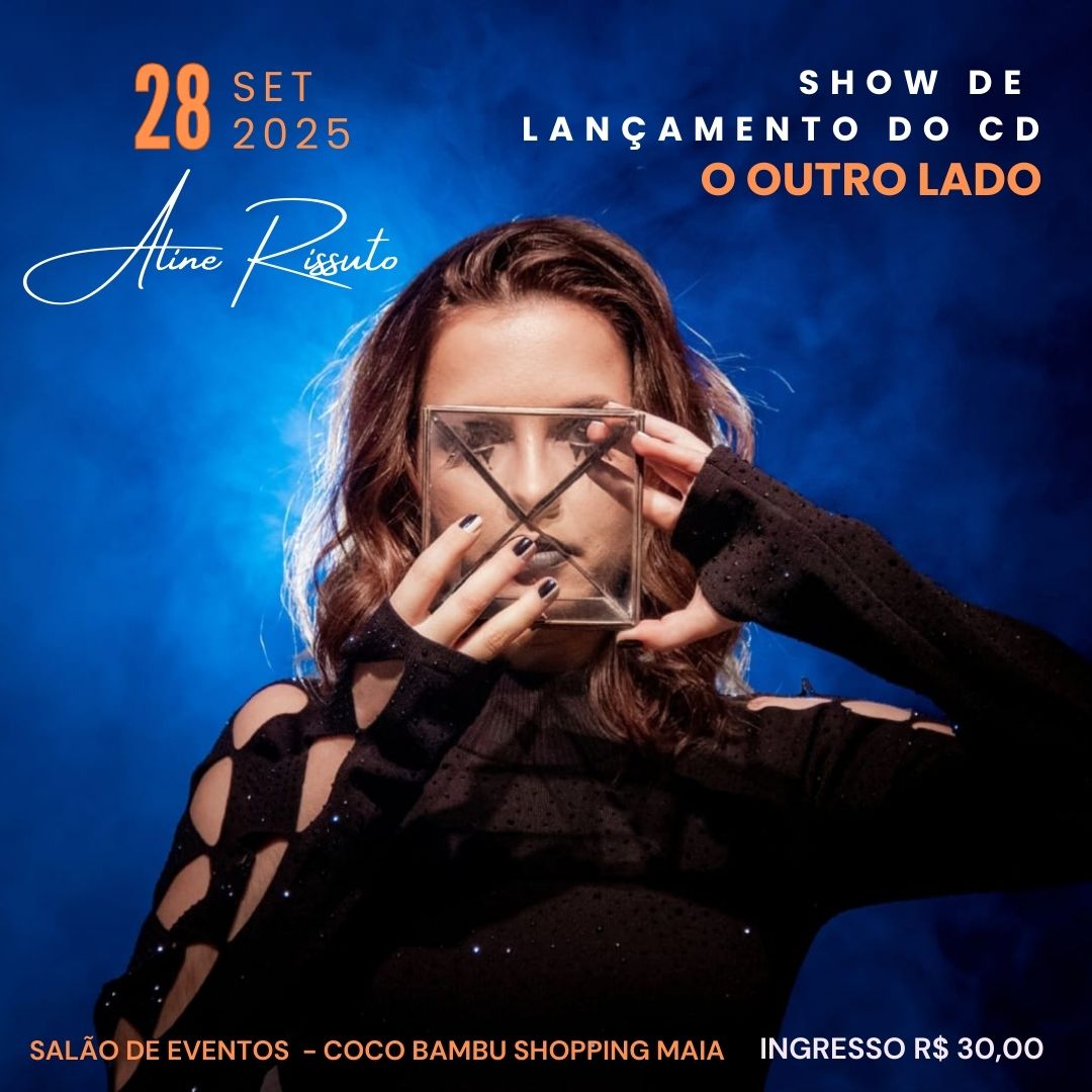 A cantora, pianista e compositora Aline Rissuto apresenta no domingo, 28 de setembro, o show de lançamento do CD físico do seu novo álbum, O Outro Lado. O espetáculo acontece às 19h, no Coco Bambu Guarulhos (Parque Shopping Maia), com participação especial do violoncelista Giuliano Dal Medico e convidados: José Ricardo, Kelly Rissuto, Carolina Frade e Letícia Cruz.