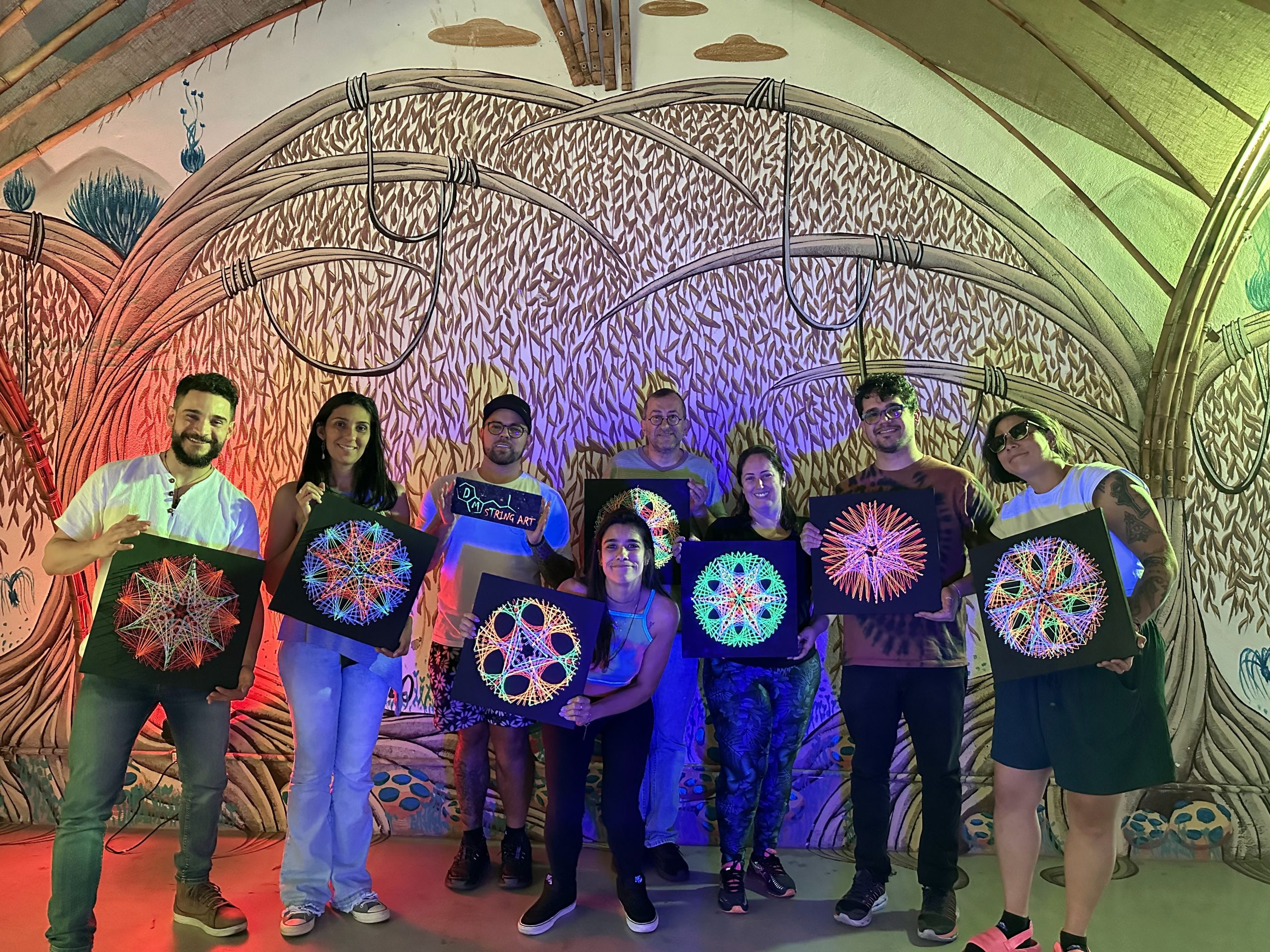 A oficina de mandalas em string art (ou arte com linhas), lecionada pelo artista Henrique Abreu tem como propósito proporcionar aos participantes uma vivência artística criativa, sensível e única. Utilizando madeira, pregos e linhas coloridas, cada pessoa irá criar sua própria mandala geométrica, uma peça original e feita à mão. 10 vagas para essa oficina.