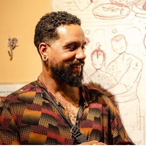 Guinho Nascimento nasceu em Guarulhos, é educador e graduado em Artes Visuais e Dança. Em suas incursões nas Artes Visuais, dedica-se ao Desenho, Gravura, Pintura e Performance, explorando temas como Trabalho, Cotidiano, Espiritualidade e os Corpos Racializados. Sua primeira exposição individual aconteceu no Centro Cultural Olido, no centro de São Paulo, em 2017. Além disso, participou de duas Residências Artísticas em Munique, Alemanha, em 2017, como intérprete e criador do espetáculo “Album_kodex_feedback”, dirigido por Mário Lopes, e em 2019 na residência Artística PlusAfroT, com a curadoria de Diane Lima e Mário Lopes.