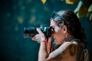 Camila Rhodes, guarulhense, 35 anos, é uma artista multifacetada que transita entre a fotografia, audiovisual, artes plásticas, performance e tatuagem. Graduada em Artes pela FIG-UNIMESP e pós-graduada em Cinema, Vídeo e Fotografia pela Universidade Anhembi Morumbi, atuou por dez anos como arte-educadora, sendo três deles com turmas da EJA em uma comunidade de Guarulhos.