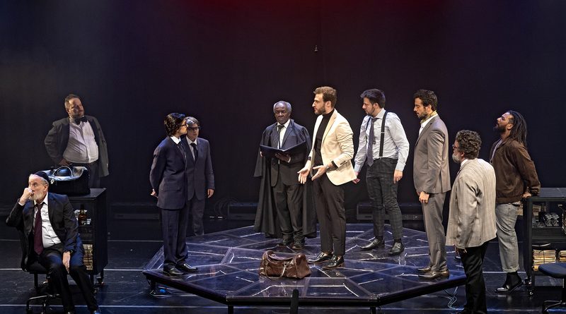 A encenação dá protagonismo ao ponto de vista de Shylock (Stulbach), personagem historicamente retratado de forma estereotipada. Nesta versão, ele emerge com complexidade humana, revelando as marcas do preconceito que carrega e o desejo de reparação por uma vida de humilhações. A proposta busca não apenas revisitar Shakespeare, mas lançar um olhar crítico sobre o presente, em um mundo ainda atravessado por ódio e disputas de poder.