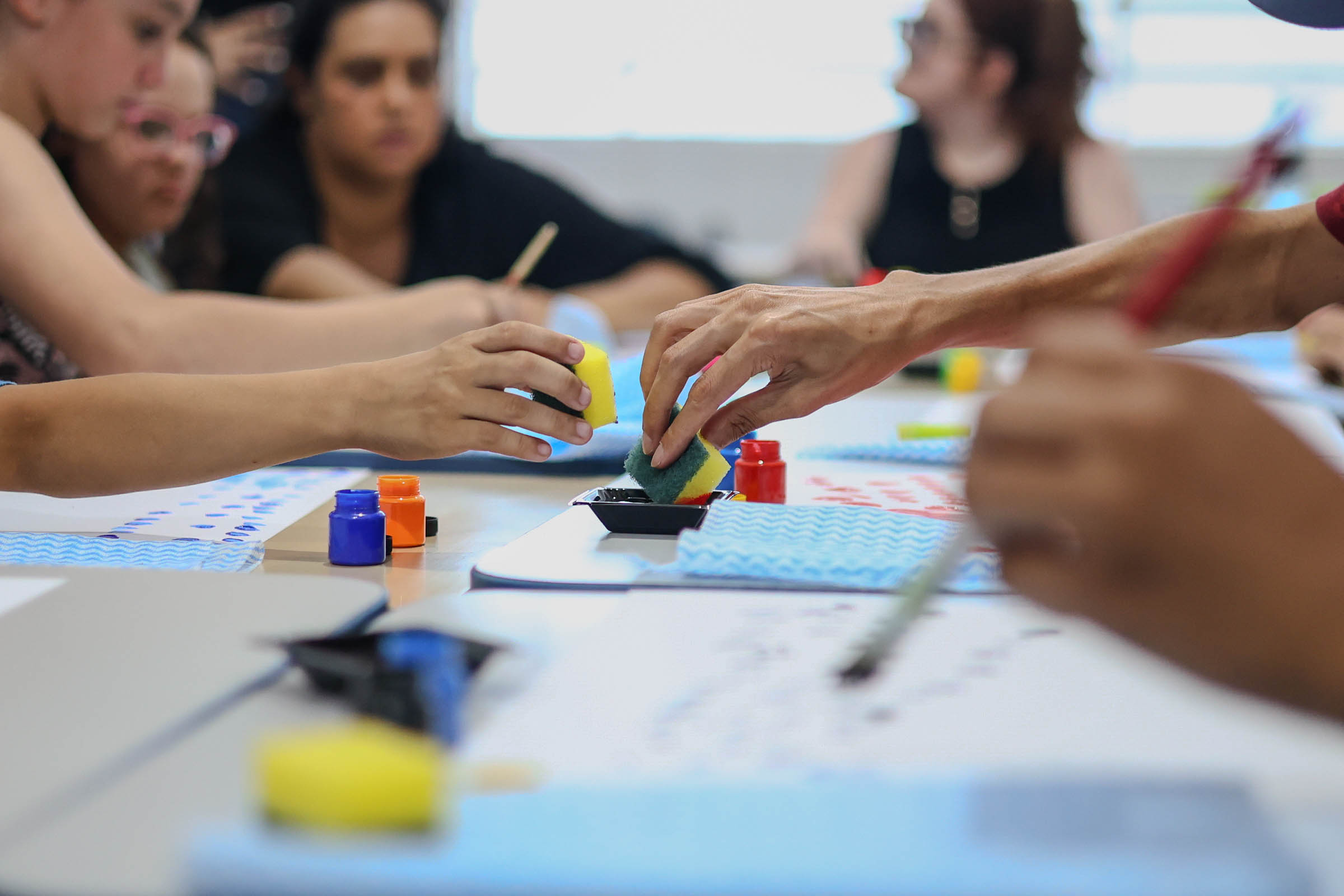 Participantes tiveram a oportunidade de soltar a imaginação e expressar emoções por meio da arte, além de explorar cores e texturas com o uso de pincéis, esponjas e da própria mão.