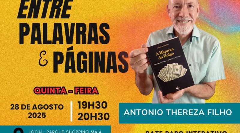 O 1º Encontro Literário Entre Palavras & Páginas desta quinta-feira (28) apresenta o lançamento do livro “A riqueza do Bolso: