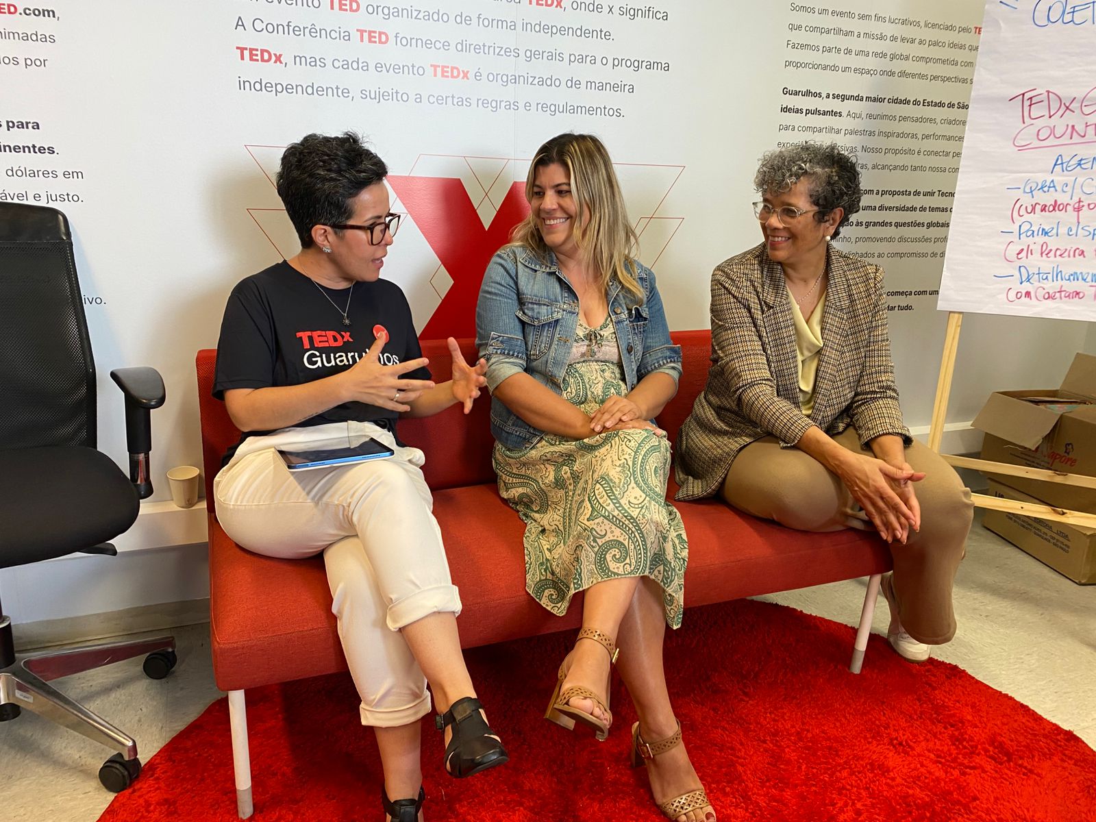 A apresentação do TED Countdown contou com a mediação da jornalista Angélica Mari, que entrevistou a escritora Luciene Müller e a educadora ambiental Celi Pereira, palestrantes de edições anteriores do TedxGuarulhos. “Tenho muito carinho pelo TEDx, pelo acolhimento às pessoas, um grande movimento de generosidade que gera mais generosidade e nos faz compreender que ninguém vive sozinho e que nossa força maior está na comunidade e na ajuda de uns aos outros”, destacou Celi.